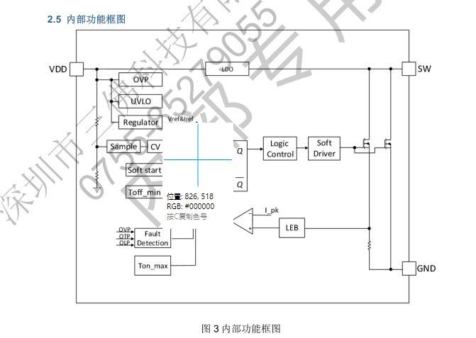 ◆ 內置高壓啟動電路、電流、電壓采樣電路