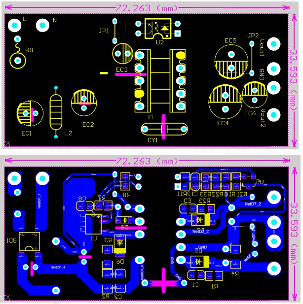 實(shí)物圖展示了BPA8604D電源模塊的緊湊結(jié)構(gòu)和簡潔布局。整個電路板采用了單面板設(shè)計,尺寸僅為72mm×33.5mm,適合安裝在空間有限的設(shè)備中。電路板上的元件布局合理,走線清晰,便于生產(chǎn)制造和維修。通過實(shí)物圖,我們可以直觀地感受到BPA8604D電源模塊的高效能和可靠性,其簡潔的設(shè)計理念和精湛的制造工藝,使其成為了現(xiàn)代電源設(shè)計的典范之作。