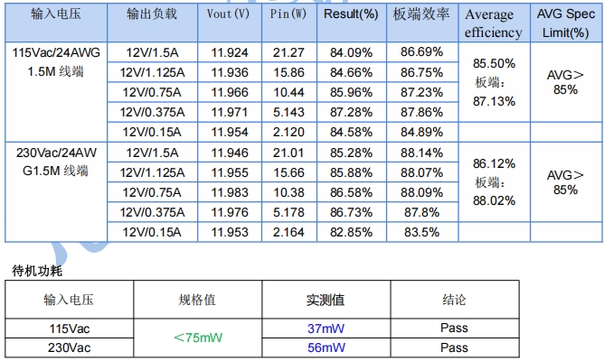 在不同輸入電壓(90Vac、230Vac、264Vac)和負(fù)載條件下,對(duì)電源的輸出電壓精度、效率、紋波等關(guān)鍵參數(shù)進(jìn)行了測(cè)試。測(cè)試結(jié)果顯示,電源在各種條件下均能滿足設(shè)計(jì)要求,輸出電壓精度高,效率穩(wěn)定,紋波控制良好。
