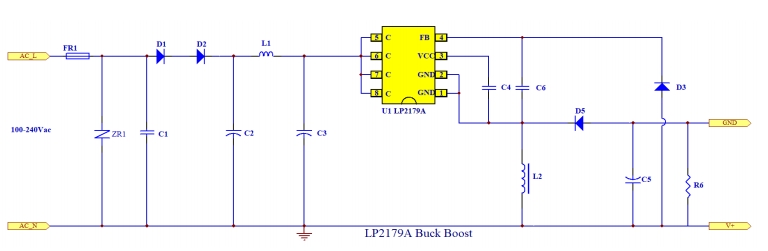 基于LP2179A芯片的典型電路設(shè)計如下圖所示: