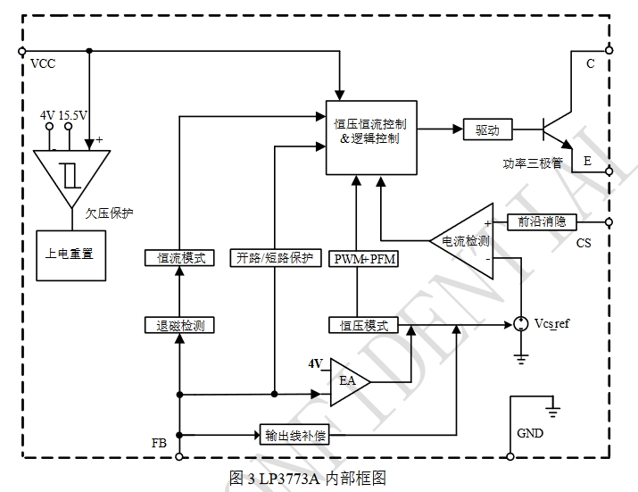 LP3773A采用SO-7封裝,集成高壓啟動、恒壓(CV)控制及過流保護(OCP)功能,支持90-420VAC寬輸入電壓范圍。其關(guān)鍵特性包括: