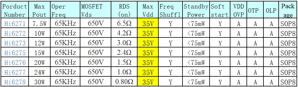 HI627系列是由大宏成生產(chǎn)的高性能AC-DC功率電源芯片,功率7.5W-30W,封裝均為SOP8。這款芯片以其出色的效率和穩(wěn)定性,滿足了市場上對于高功率電源解決方案的需求。