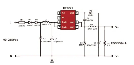 集成700V MOSFET和高壓?jiǎn)?dòng)電路,確保穩(wěn)定啟動(dòng)。