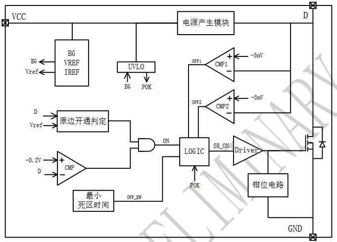 LP10R100S是由芯茂微電子推出的一款適用于AC-DC同步整流應用的芯片,特別適用于正激和反激系統(tǒng)。這款芯片支持多種工作模式,包括DCM(斷續(xù)導通模式)、BCM(邊界導通模式)、QR(準諧振模式)和CCM(連續(xù)導通模式)。LP10R100S內部框架圖如下: