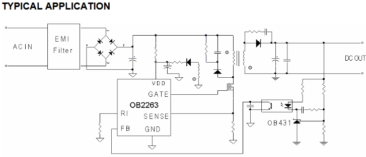 OB2263內(nèi)置前沿消隱(LEB)功能,節(jié)省了一個(gè)外部的R-C網(wǎng)絡(luò),降低了系統(tǒng)成本。