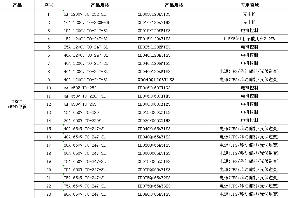 國產(chǎn)IGBT芯達(dá)茂XD040Q120AY1S3,IBGT+FRD單管40A 1200V TO-247-3L