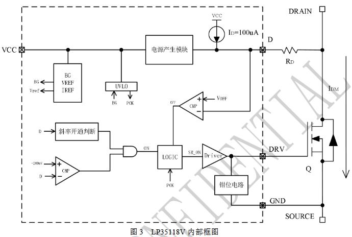 LP35118V的DRV引腳與同步整流MOSFET的柵極連接,通過檢測漏極電壓的變化來控制MOSFET的導(dǎo)通和關(guān)斷。