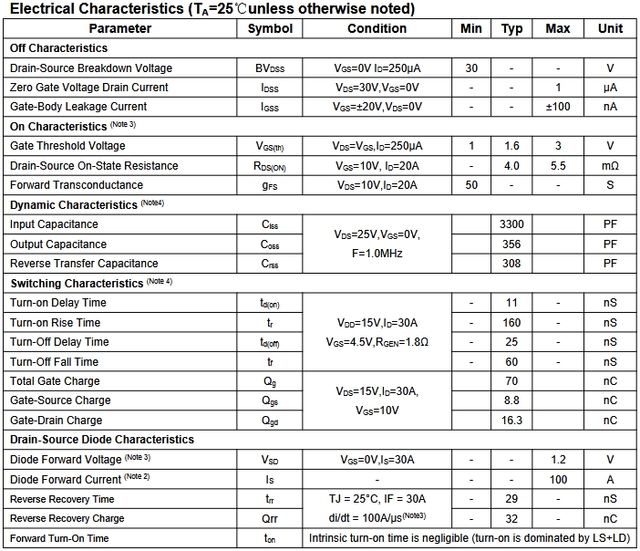RDS(ON)在電壓為10V時(shí)小于5.5mΩ(電壓為4mΩ)