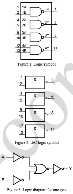 引腳圖和編號(hào)與行業(yè)標(biāo)準(zhǔn) 74HC00 完全一致。