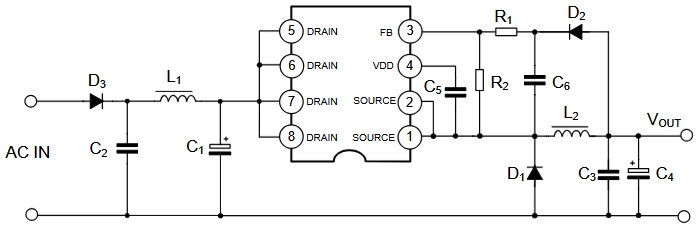 | 內(nèi)置MOS管 | 650V | - | 800V |