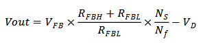 其中,Nf是變壓器輔助繞組匝數(shù),RFBH是FB外接的上偏電阻,RFBL是FB內(nèi)置的固定下偏電阻,VFB一般按照1.0V計算,VD為輸出續(xù)流管壓降。