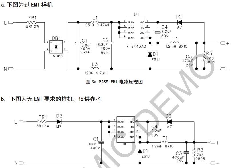 FT8443AD內(nèi)置650V高壓MOS,使得IC在工作過(guò)程中溫度較低,進(jìn)一步提升了電源的可靠性。同時(shí),該方案還具備過(guò)壓、欠壓、過(guò)溫、過(guò)流以及輸出短路保護(hù)等多種保護(hù)功能,全方位保障電源的安全運(yùn)行,延長(zhǎng)電源的使用壽命。
