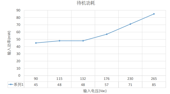 在230VAC輸入條件下,待機功耗僅為73mW,滿足低功耗設(shè)計要求。