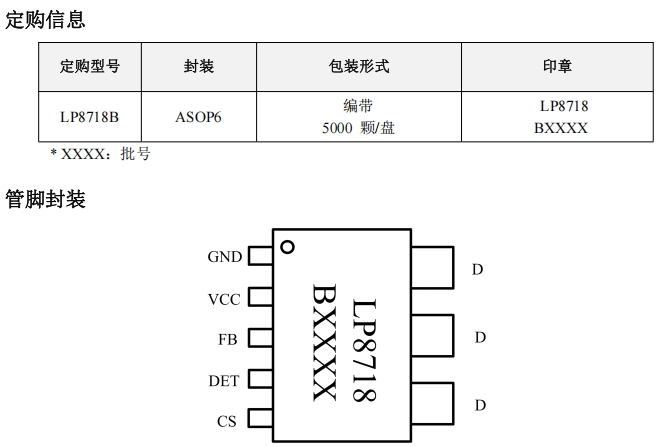 LP8718B 采用 ASOP6 封裝,尺寸緊湊,適合高密度設(shè)計,能夠有效節(jié)省 PCB 空間。