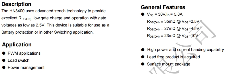 HN3400C:小電流、高速度、低電荷,適合做高頻 PWM 或負(fù)載開關(guān),散熱更好(R<sub> 僅 73.5 °C/W)。