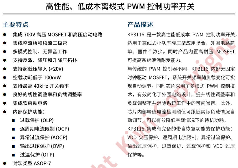 KP3116WPA 把“高壓 MOS + 高壓啟動 + 多模式 PWM”一口氣塞進(jìn) SOP-7,外圍僅 8 顆料,空載 <100 mW,系統(tǒng)成本 <0.45 元,PCB 1 cm2 搞定??赐赀@篇,你會明白什么叫“一粒米”電源。