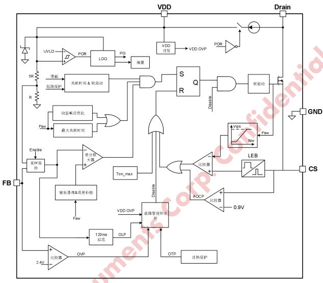 所有型號均內(nèi)置 500V 高壓 MOSFET、高壓啟動電路、多模式 PWM 控制器,支持 Buck 和 Buck-Boost 拓撲,默認 12V 輸出(FB 腳懸空),待機功耗 <50mW。