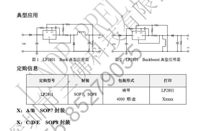 LP2801A非隔離電源芯片,輸出電壓可調(diào),電流100MA,封裝:SOP7