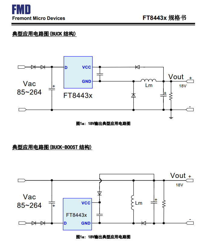 FT8443x是一款高性能、高精度、低成本的非隔離PWM功率開關(guān)。它包含一個專門的電流模PWM控制器和一個高壓功率開關(guān)管。內(nèi)置的誤差放大器經(jīng)過優(yōu)化保證優(yōu)越的動態(tài)響應(yīng)。高精度的內(nèi)部分壓電阻和參考電壓,以及穩(wěn)定的閉環(huán)反饋使得FT8443x在全電壓輸入范圍內(nèi)都能得到穩(wěn)定的高精度輸出電壓。