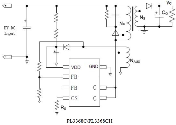 PL3368C 同時(shí)具有多種保護(hù)功能:逐周期峰值電流檢測(cè)、VDD 欠壓/過壓保護(hù)、輸出過壓保護(hù)、輸出短路保護(hù)和過溫保護(hù)等。