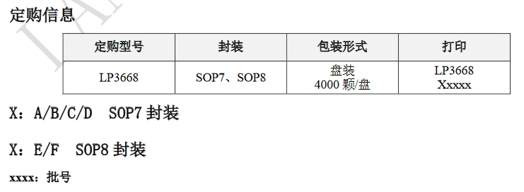 電路圖展示了LP3668B的典型應用,包括AC輸入、Vout輸出、VCC供電、FB反饋和GND接地。